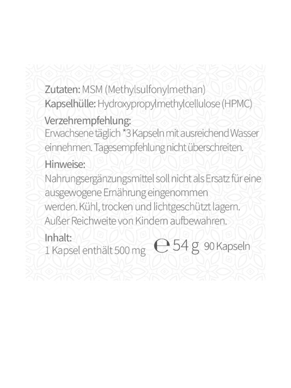 Zutaten: MSM (Methylsulfonylmethan)
