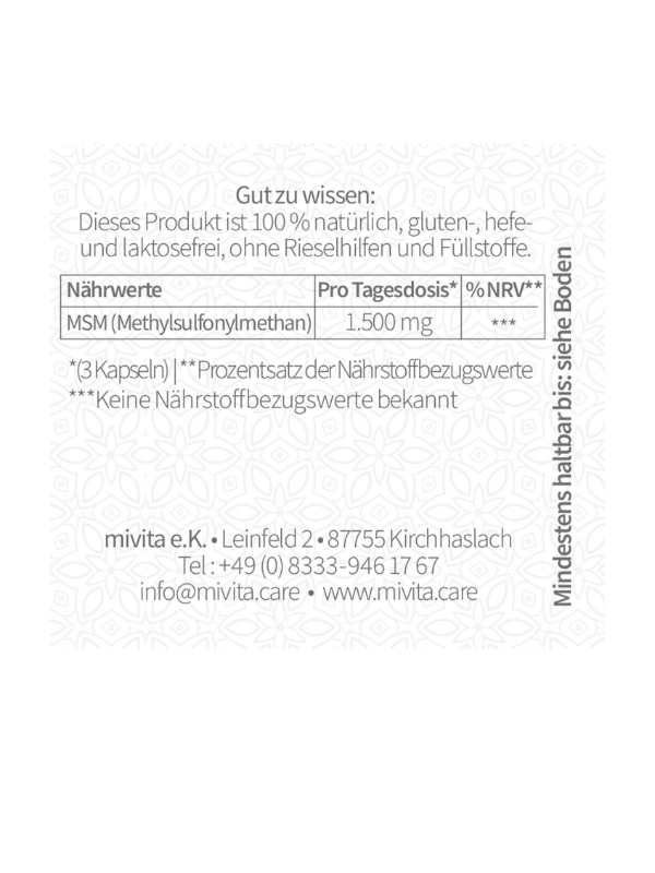 MSM (Methylsulfonylmethan)1.500 mg